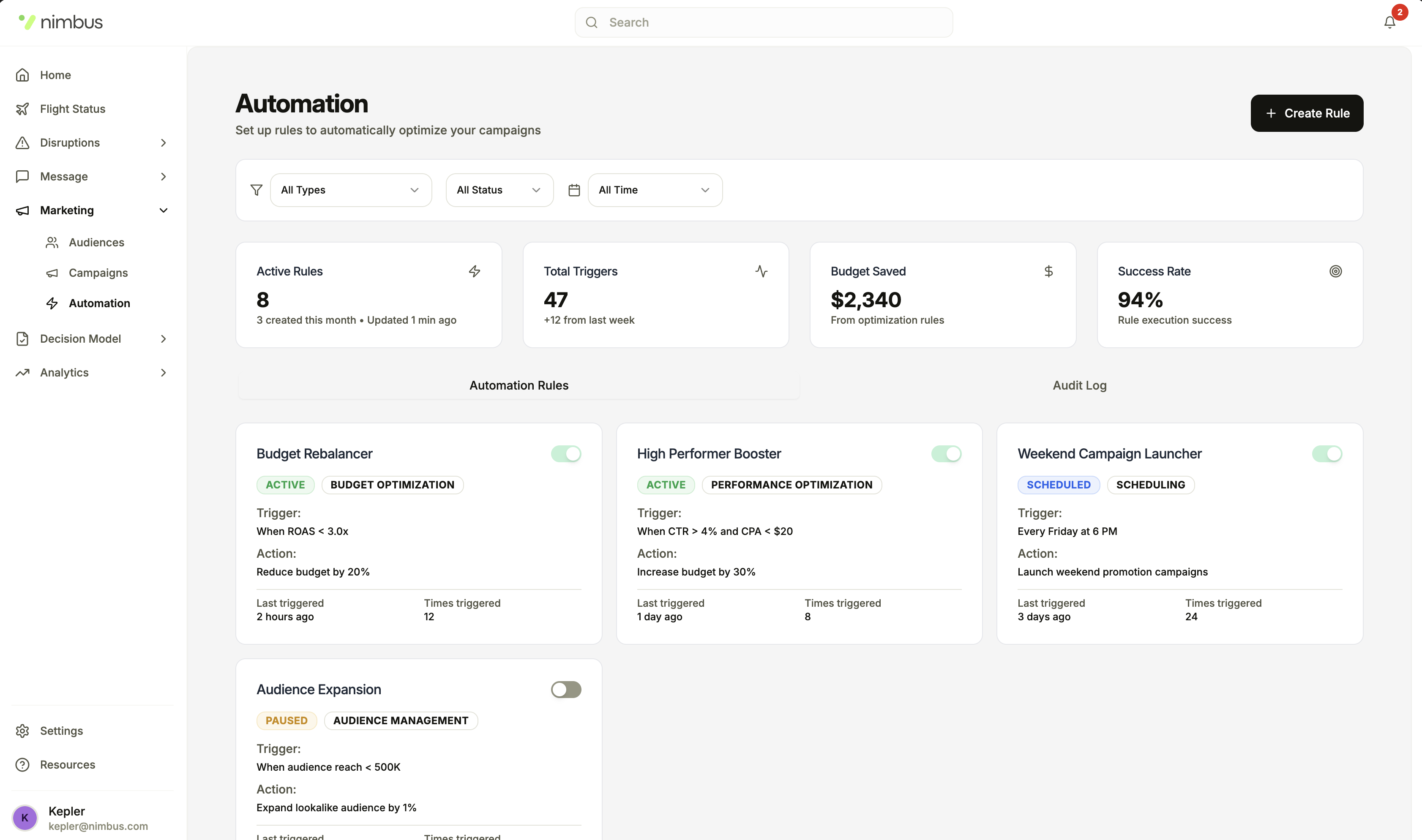 Build audiences by geography, behaviour, loyalty status and travel signals.
